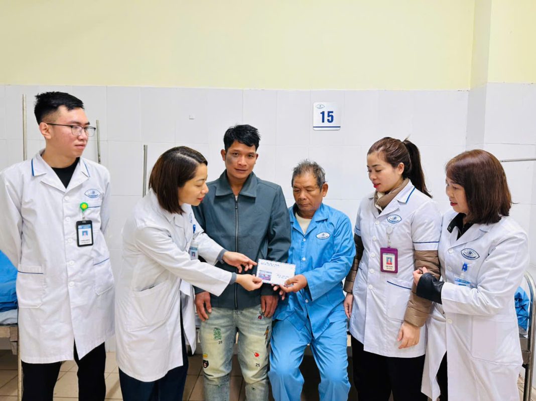 Tiếp nối những hoạt động “tương thân, tương ái”, ngày 22/01/2026, khoa Điều trị tổng hợp phối hợp tổ công tác xã hội Bệnh viện Mắt trao tặng quà hỗ trợ tới Bệnh nhân L.V.E, 71 tuổi, địa chỉ bản Ta Lúc, xã Phiêng Pằn, tỉnh Sơn La. Bệnh nhân L.V.E hiện đã phẫu thuật thủy tinh thể 2 mắt và đang trong quá trình theo dõi, chăm sóc tại Bệnh viện Mắt tỉnh Sơn La. Gia đình bệnh nhân thuộc diện hộ nghèo lâu năm, vợ bệnh nhân bị liệt nằm một chỗ, các con gái lấy chồng xa nên không có ai chăm sóc, bệnh nhân muốn xin ra viện. Các bác sĩ, điều dưỡng tại Khoa Điều trị Tổng hợp đã kịp thời phân tích và động viên bệnh nhân an tâm ở lại theo dõi đến khi đủ điều kiện sẽ ra viện.