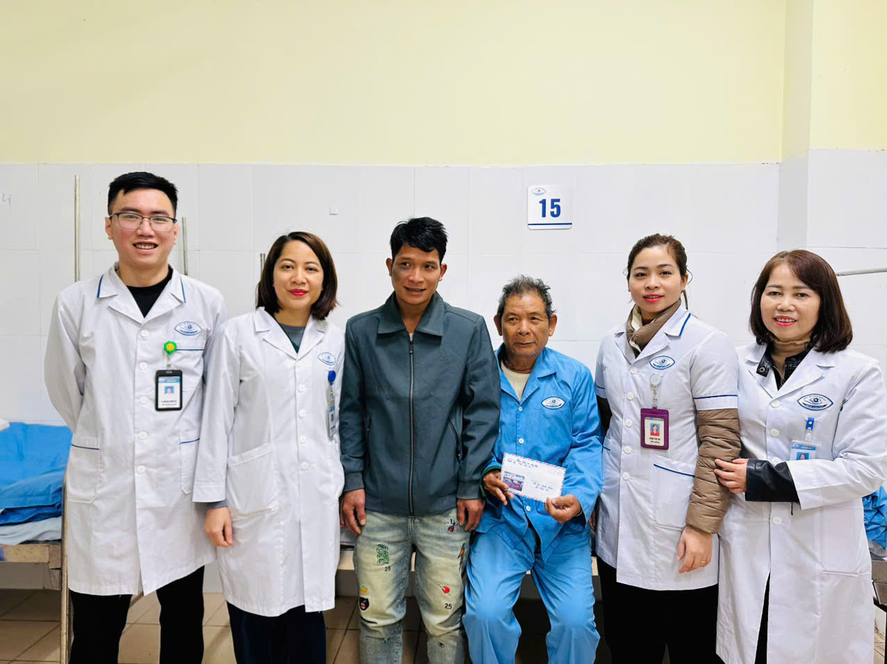 Tiếp nối những hoạt động “tương thân, tương ái”, ngày 22/01/2026, khoa Điều trị tổng hợp phối hợp tổ công tác xã hội Bệnh viện Mắt trao tặng quà hỗ trợ tới Bệnh nhân L.V.E, 71 tuổi, địa chỉ bản Ta Lúc, xã Phiêng Pằn, tỉnh Sơn La. Bệnh nhân L.V.E hiện đã phẫu thuật thủy tinh thể 2 mắt và đang trong quá trình theo dõi, chăm sóc tại Bệnh viện Mắt tỉnh Sơn La. Gia đình bệnh nhân thuộc diện hộ nghèo lâu năm, vợ bệnh nhân bị liệt nằm một chỗ, các con gái lấy chồng xa nên không có ai chăm sóc, bệnh nhân muốn xin ra viện. Các bác sĩ, điều dưỡng tại Khoa Điều trị Tổng hợp đã kịp thời phân tích và động viên bệnh nhân an tâm ở lại theo dõi đến khi đủ điều kiện sẽ ra viện.