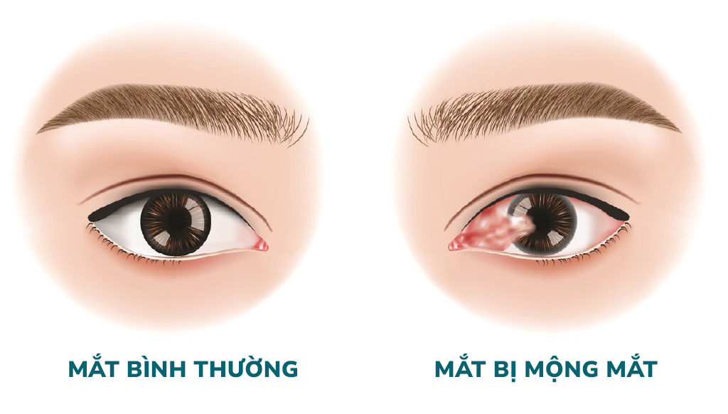- Mộng thịt xơ: Đầu mộng có dạng tròn, màu trắng đặc, ít tiến triển và hiếm khi tái phát sau phẫu thuật.